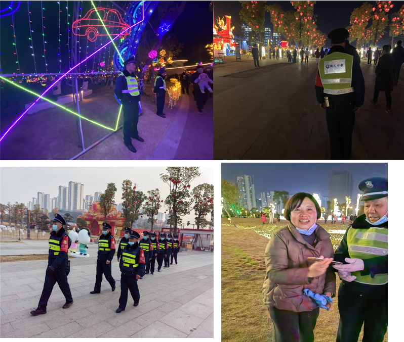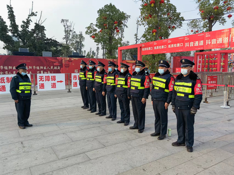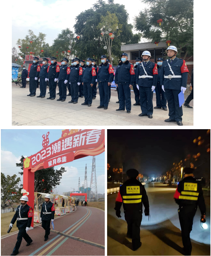 2023年的春節(jié)隨著疫情逐漸好轉(zhuǎn),市政府在金螺灣公園舉辦了德陽市第十四屆燈會,經(jīng)開區(qū)管委會在柳梢堰公司舉行了“2023潮遇新春”大型文藝活動,作為一支強(qiáng)有力的輔警隊伍,公司義不容辭,和兄弟公司一起承擔(dān)了兩項活動的安全守護(hù)工作。