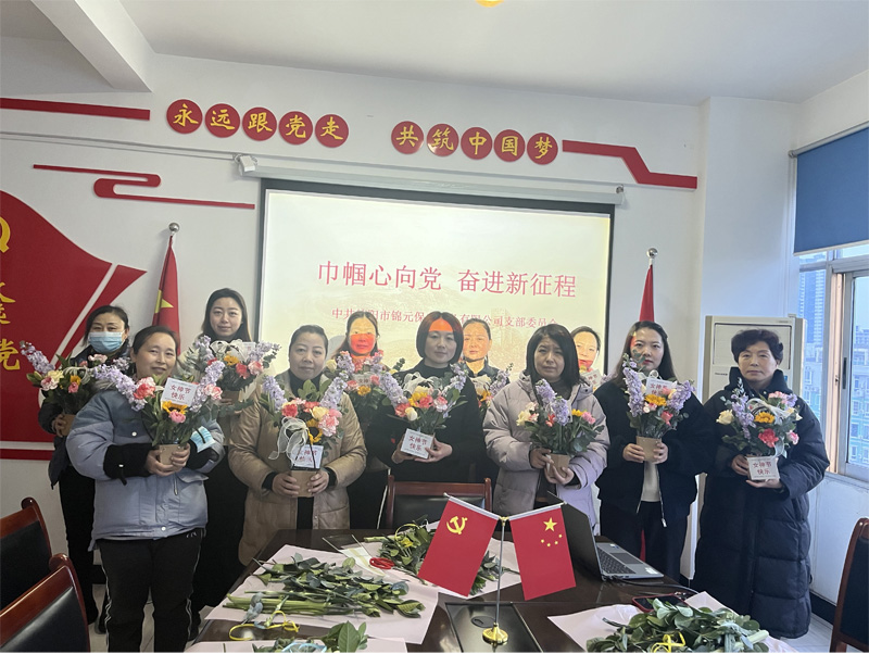 為深入貫徹落實(shí)黨的二十大精神和習(xí)近平總書記關(guān)于婦女兒童和婦聯(lián)工作的重要論述,切實(shí)加強(qiáng)和發(fā)揮婦聯(lián)組織作為黨聯(lián)系婦女群眾的橋梁和紐帶作用,牢牢把握引領(lǐng)聯(lián)系婦女兒童的根本要求,公司支部結(jié)合自身工作實(shí)際,在節(jié)日當(dāng)天召開了“巾幗心向黨,奮進(jìn)新征程”的主題座談會(huì)及插花活動(dòng)。并落實(shí)了一系列切實(shí)有效的維護(hù)女職工權(quán)益的措施,如安排女職工進(jìn)行體檢、為她們購買婦女安康險(xiǎn)、發(fā)放節(jié)日慰問品等等。以此激勵(lì)廣大女員工立足崗位,爭(zhēng)奉獻(xiàn)、求進(jìn)步、謀發(fā)展,為推進(jìn)錦元保安穩(wěn)定發(fā)展做出新的貢獻(xiàn)。