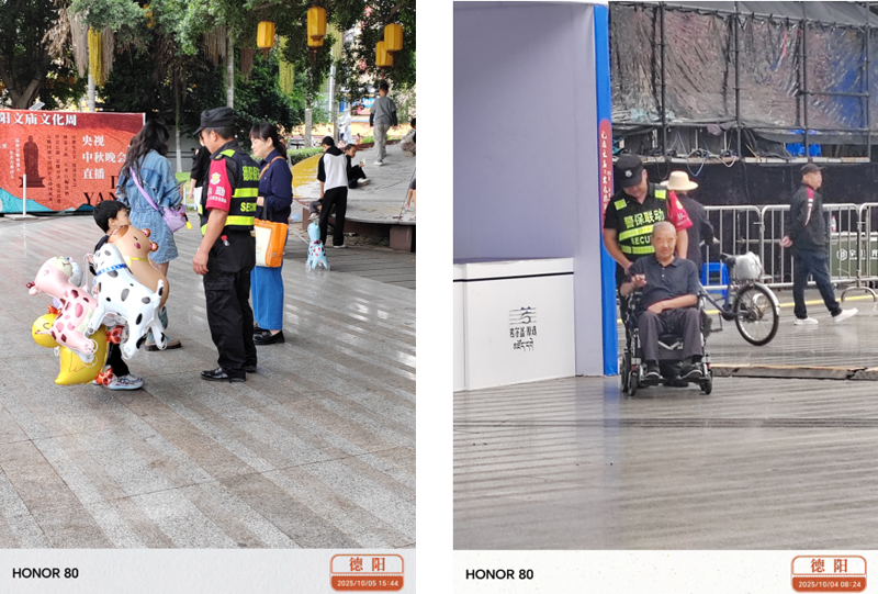 溫情服務(wù),柔性守護:安保工作并非只有鐵面無私,更充滿了人文關(guān)懷。文廟廣場活動現(xiàn)場,一名與家人走散的小男孩在安保人員的悉心照料下,通過廣播系統(tǒng)很快找到了父母;也有老人忽感身體不適,執(zhí)勤隊員第一時間發(fā)現(xiàn)并聯(lián)系醫(yī)療點,提供了及時的幫助。這些溫暖的瞬間,讓嚴肅的安保工作充滿了溫度,贏得了德陽市民的廣泛贊譽。